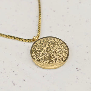 سلسلة أنيقة بتصميم دائري مميز محفور عليها آية الكرسي بخط عربي دقيق يمنحها طابعًا روحانيًا...