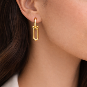 Elegant drop earrings crafted from gold-plated stainless steel, featuring a modern elongated design with polished bead accents. Minimal yet striking, they add a refined touch of sophistication to both everyday looks and special occasions.