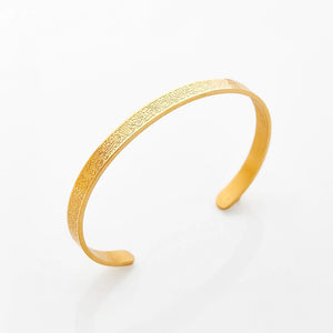 تم تصميم هذا السوار ليمنح راحة مثالية على المعصم مع لمسة ذهبية أنيقة. مصنوع من ستانلس ستيل316 نقي ومطلي ذهب 18 قيراط، ليجمع بين المتانة واللمعان وجودة تدوم.