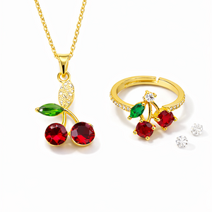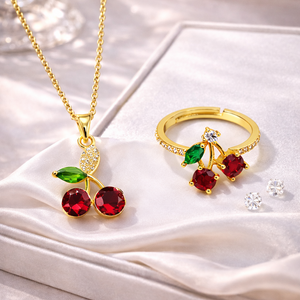 The cherry-inspired design, accented with vibrant stones, adds a playful yet sophisticated touch — perfect for elevating both everyday looks and special occasions.