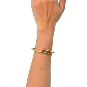 تم تصميم هذا السوار ليمنح راحة في الارتداء وحركة طبيعية مع المعصم. مصنوع من ستانلس ستيل 316 ومطلي ذهب 18 قيراط، مع مقاومة لتغير اللون ولمظهر مصقول دائمًا.