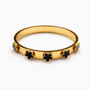 يمنح هذا السوار مظهرًا ذهبيًا راقيًا مع إحساس مريح ومتوازن على المعصم. مصنوع من ستانلس ستيل 316 عالي الجودة ومطلي ذهب 18 قيراط.