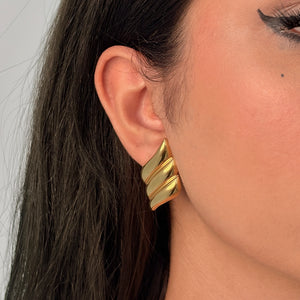These earrings offer a classic gold look shaped by clean lines and thoughtful design. Made from 316 stainless steel with 18K gold plating, they provide a comfortable fit and a polished finish that remains elegant over time.