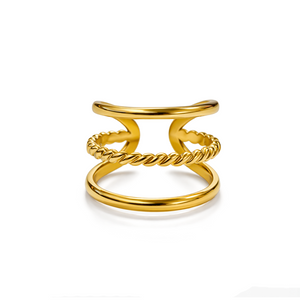 A refined ring created for those who appreciate detail without distraction. Made from pure 316 stainless steel and finished with 18K gold plating, it balances elegance and everyday practicality.