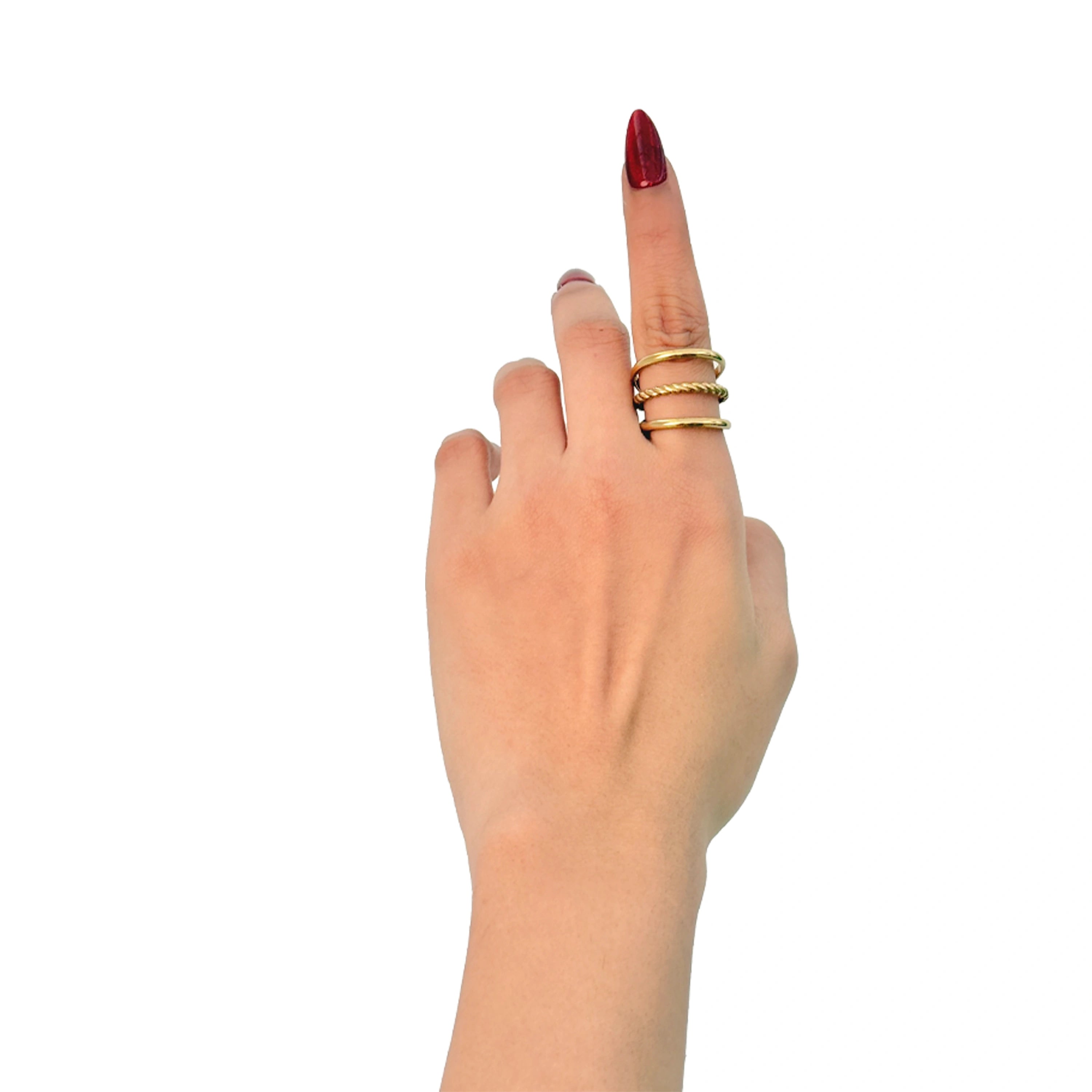 خاتم أنيق صُمم لمن يقدّرون التفاصيل دون مبالغة. مصنوع من ستانلس ستيل 316 نقي ومطلي ذهب 18 قيراط، ليوازن بين الأناقة والعملية اليومية.